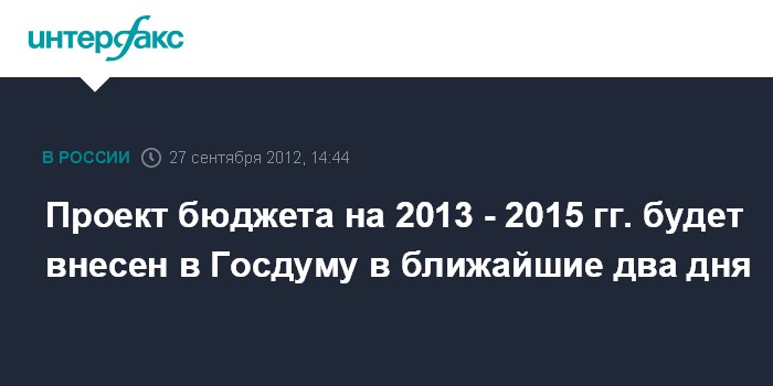 Ново-Огарево. 27 сентября. INTERFAX.RU - Премьер-министр РФ Дмитрий Медведев заявил, что в ближайшие два дня проект федерального бюджета на 2013 и 2014-2015 годы будет внесен в Госдуму.