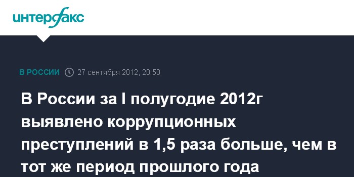 В России за I полугодие 2012г выявлено коррупционных преступлений в 1,5 раза больше, чем в тот же период прошлого года