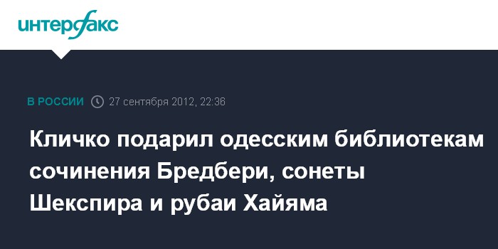 Кличко подарил одесским библиотекам сочинения Бредбери, сонеты Шекспира и рубаи Хайяма