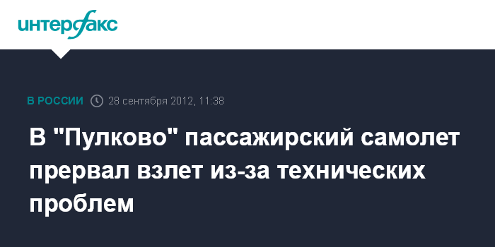 Москва. 28 сентября. INTERFAX.RU - Пассажирский Ан-148 вынужден был прервать взлет из петербургского аэропорта "Пулково" из-за проблем в электронике, сообщил в пятницу "Интерфаксу" источник в авиадиспетчерских службах Санкт-петербургского авиаузла.