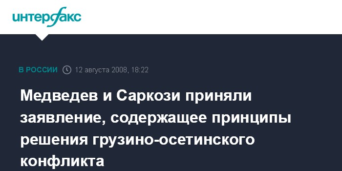 Медведев и Саркози приняли заявление, содержащее принципы решения грузино-осетинского конфликта