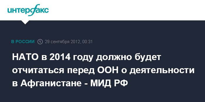 НАТО в 2014 году должно будет отчитаться перед ООН о деятельности в Афганистане - МИД РФ