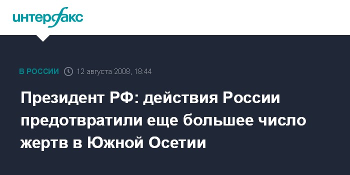 Президент РФ: действия России предотвратили еще большее число жертв в Южной Осетии