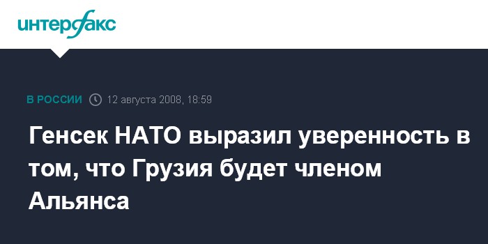 Брюссель. 12 августа. INTERFAX.RU - Грузия однажды станет членом НАТО, считает генеральный секретарь Североатлантического альянса Яап де Хооп Схеффер. "Я думаю, приверженность Бухарестской декларации продолжает действовать. Союзники по НАТО решили в Бухаресте, что Грузия однажды станет членом Североатлантического альянса", - заявил Яап де Хооп Схеффер на пресс-конференции, которая состоялась после того, как военные представители стран НАТО провели в Брюсселе встречу с представителями Грузии.