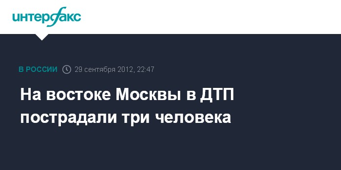 Москва. 29 сентября. ИНТЕРФАКС – Двое взрослых и один ребенок пострадали в результате ДТП на востоке Москвы, сообщил «Интерфаксу» источник в правоохранительных органах.