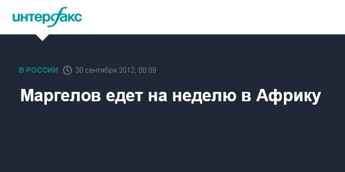 Москва. 30 сентября. ИНТЕРФАКС - Спецпредставитель президента РФ по сотрудничеству со странами Африки Михаил Маргелов отправляется с рабочей поездкой по континенту.