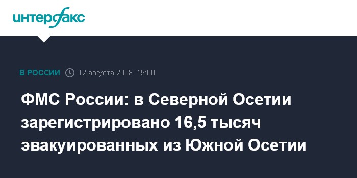 ФМС России: в Северной Осетии зарегистрировано 16,5 тысяч эвакуированных из Южной Осетии