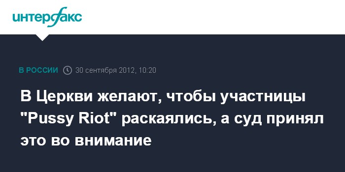 "Еще раз повторяем, что подобные деяния (акция в храме Христа Спасителя - "ИФ"), посягающие на чувства верующих, заслуживают осуждения и не могут оставаться безнаказанными, чем бы их ни пытались оправдать. Такую позицию занимает и подавляющее большинство наших сограждан", - говорится в распространенном в воскресенье официальном комментарии главы Синодального информационного отдела Владимира Легойды в связи c рассмотрением 1 октября дела "Pussy Riot".