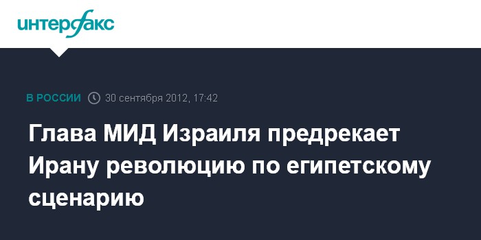 Иерусалим. 30 сентября. INTERFAX.RU - В Иране может начаться народное восстание по примеру прошлогодней революции в Египте, заявил глава израильского МИД Авигдор Либерман в интервью газете "Гаарец". "Акции протеста оппозиции, которые прошли в Иране в июне 2009 года, вновь повторятся с еще большей силой", - цитирует издание слова А.Либермана.