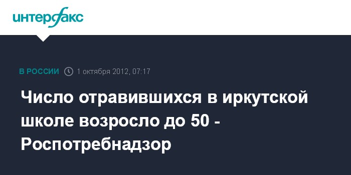 Москва. 1 октября. ИНТЕРФАКС - Количество случаев отравления среди учеников и сотрудников иркутской школы N 22 возросло до 50 человек, сообщает Роспотребнадзор в понедельник.