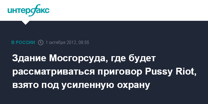 Москва. 1 октября. INTERFAX.RU - Столичная полиция усилила меры безопасности у здания Мосгорсуда, где в понедельник будет рассмотрена кассационная жалоба на приговор осужденным на 2 года участницам панк-группы Pussy Riot.