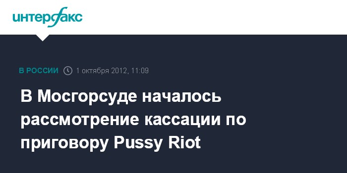 Москва. 1 октября. INTERFAX.RU - В Мосгорсуде началось рассмотрение кассационной жалобы на приговор участница группы Pussy Riot, осужденных 17 августа на два года колонии за скандальную акцию в храме Христа Спасителя.