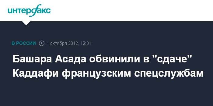Лондон. 1 октября. INTERFAX.RU - Сирийский президент Башар Асад сыграл ключевую роль в поимке бывшего ливийского лидера Муамара Каддафи, пишет в понедельник британская газета The Daily Telegraph со ссылкой на бывшего высокопоставленного сотрудника ливийской разведки Рами аль-Убейди.