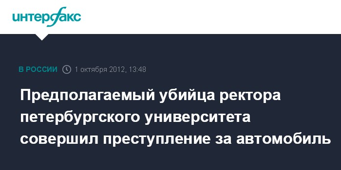 Предполагаемый убийца ректора петербургского университета совершил преступление за автомобиль