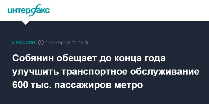 По его словам, до конца 2012 года будет улучшено обслуживание более 600 тыс. москвичей, пользующихся метро.