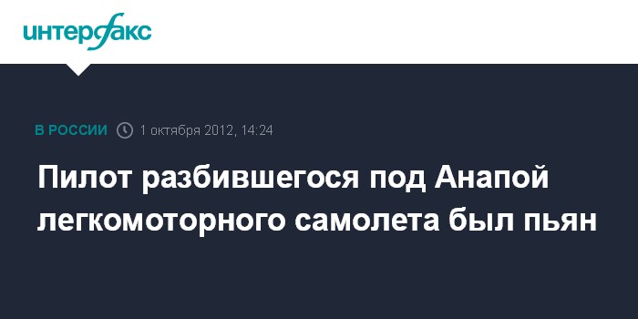 Ростов-на-Дону. 1 октября. INTERFAX.RU - Новороссийской транспортной прокуратурой организована проверка по факту крушения легкомоторного самолета-амфибии 30 сентября под Анапой (Краснодарский край). Как сообщила в понедельник пресс-служба Южной транспортной прокуратуры, пилот самолета находился в состоянии алкогольного опьянения.