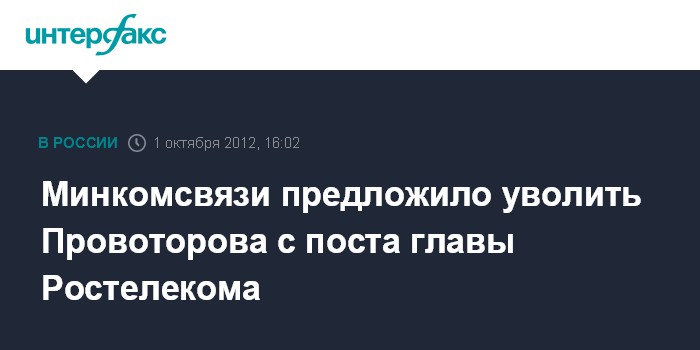 Минкомсвязи предложило уволить Провоторова с поста главы Ростелекома