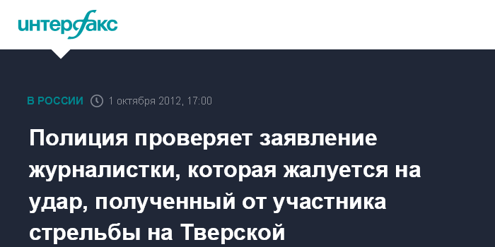Полиция проверяет заявление журналистки, которая жалуется на удар, полученный от участника стрельбы на Тверской
