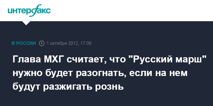 Глава МХГ считает, что "Русский марш" нужно будет разогнать, если на нем будут разжигать рознь