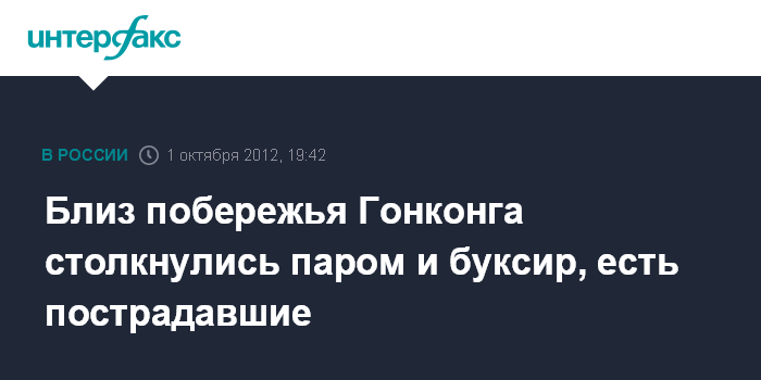 Сингапур. 1 октября. INTERFAX.RU - Не менее 20 человек пострадали в ночь на вторник в результате столкновения парома с буксиром у острова Ламма близ побережья Гонконга (Сянгана), сообщает интернет-сайт гонконгской газеты "Саут Чайна морнинг пост".