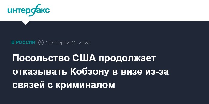 Москва. 1 октября. INTERFAX.RU - Посольство США в очередной раз отказало российскому певцу и депутату Иосифу Кобзону в визе из-за связей с криминалом.
