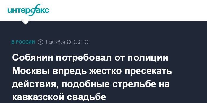 Собянин потребовал от полиции Москвы впредь жестко пресекать действия, подобные стрельбе на кавказской свадьбе