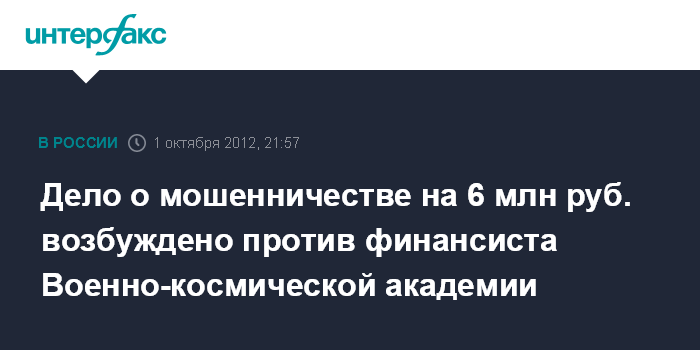 Дело о мошенничестве на 6 млн руб. возбуждено против финансиста Военно-космической академии
