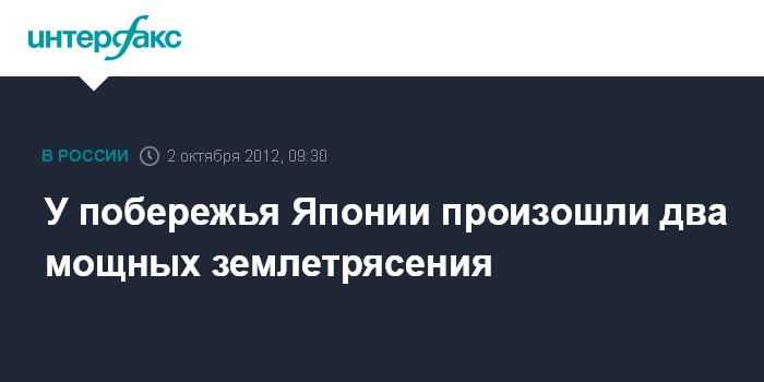 Вашингтон. 2 октября. INTERFAX.RU - Два мощных землетрясения произошли во вторник у северного побережья Японии, сообщила во вторник Геологическая служба США.