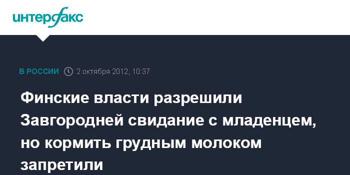 Хельсинки. 2 октября. INTERFAX.RU - Власти Финляндии запретили россиянке Анастасии Завгородней кормить новорожденного младенца грудным молоком.