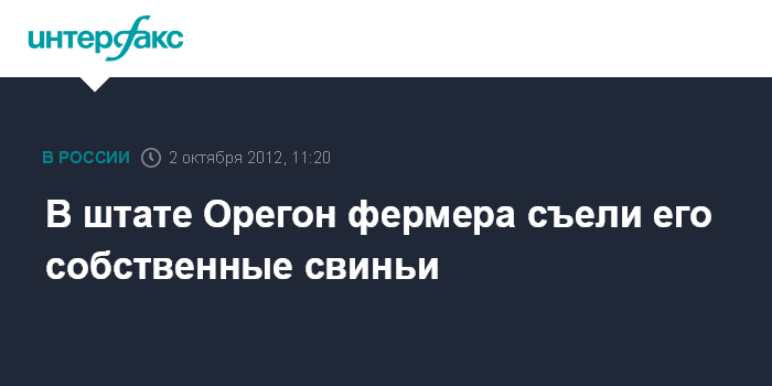 Лондон. 2 октября. INTERFAX.RU - В американском штате Орегон свиньи съели 70-летнего фермера Терри Вэнса Гарнера, сообщает во вторник BBC.