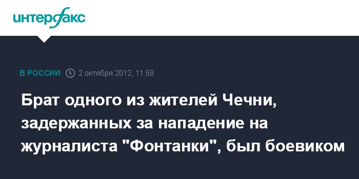 Москва. 2 октября. INTERFAX.RU - Брат одного из троих жителей Чечни, задержанных по подозрению в нападении на журналиста "Фонтанки" в Москве, ранее был убит во время спецоперации на Северном Кавказе, сообщил "Интерфаксу" источник в правоохранительных органах.
