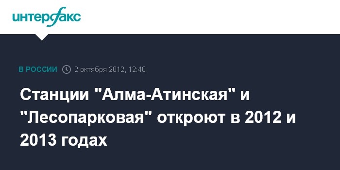 Станции "Алма-Атинская" и "Лесопарковая" откроют в 2012 и 2013 годах