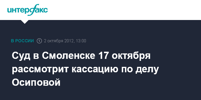 Суд в Смоленске 17 октября рассмотрит кассацию по делу Осиповой
