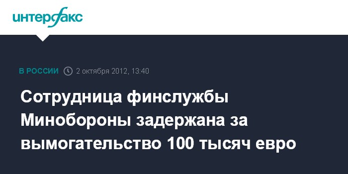 Сотрудница финслужбы Минобороны задержана за вымогательство 100 тысяч евро