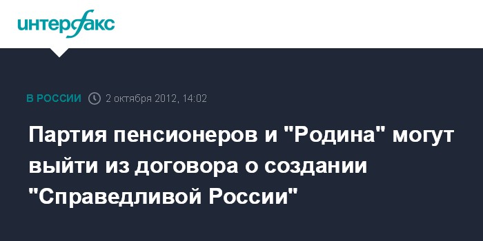 Партия пенсионеров и "Родина" могут выйти из договора о создании "Справедливой России"