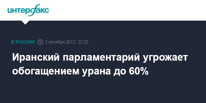 Тегеран. 2 октября. INTERFAX.RU - Иран обогатит уран до 60%, если очередной раунд переговоров с "шестеркой" (пять членов СБ ООН и Германия) не даст положительных результатов, заявил во вторник замглавы парламентского комитета внешней политики и национальной безопасности Ирана Мансур Хакикатпур.