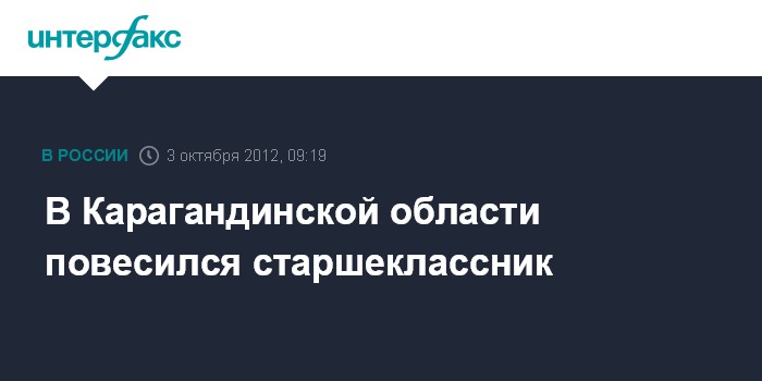 Караганда. 3 октября. INTERFAX.RU - В поселке Карагайлы Карагандинской области Казахстана покончил самоубийством 9-классник местной школы.