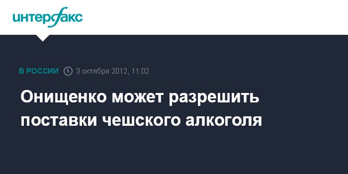 Ранее Россия ввела запрет на поставки крепкого алкоголя из Чехии из-за случаев отравлений спиртным с метанолом. В воскресенье Геннадий Онищенко сказал "Интерфаксу", что также его ведомство потребовало от российских торговых сетей изъять из оборота чешский алкоголь, произведенный с 1 января по 26 сентября 2012 года.