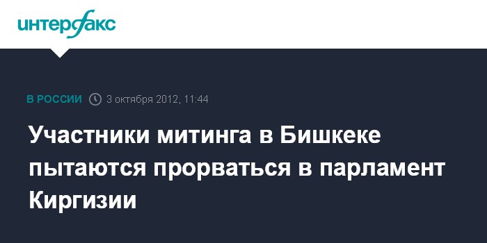 Бишкек. 3 октября. INTERFAX.RU - Часть участников митинга, проходящего в среду в Бишкеке, предприняла попытку войти в здание парламента Киргизии. Охрана здания пока сдерживает натиск участников акции, сообщает корреспондент "Интерфакса".