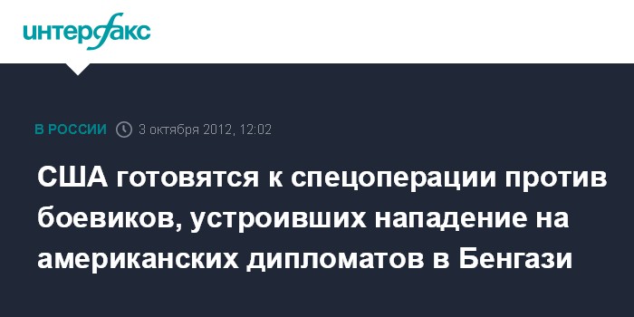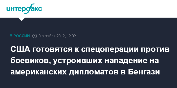 Вашингтон. 3 октября. INTERFAX.RU - США закладывают фундамент для начала спецопераций по поимке или уничтожению боевиков, организовавших нападение на американское консульство в Бенгази, сообщает газета The New York Times.