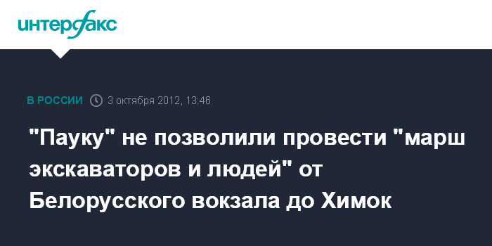 "Пауку" не позволили провести "марш экскаваторов и людей" от Белорусского вокзала до Химок