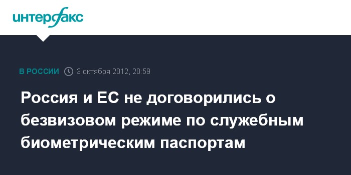 Россия и ЕС не договорились о безвизовом режиме по служебным биометрическим паспортам