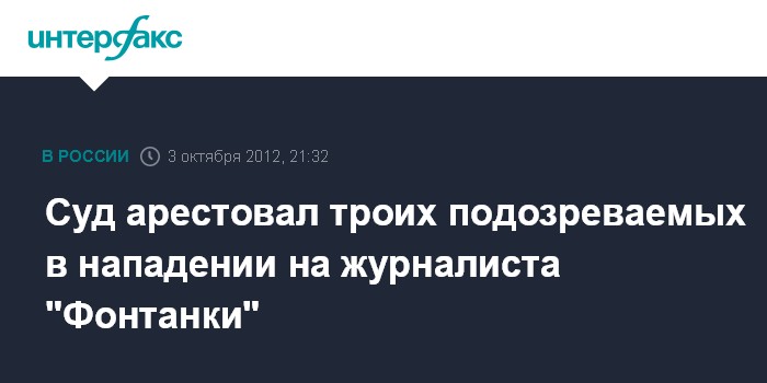 Москва. 3 октября. INTERFAX.RU - Черемушкинский суд Москвы в среду санкционировал арест троих выходцев с Кавказа, которые подозреваются в нанесении ран журналисту сетевого издания "Фонтанка" на станции метро "Парк культуры".