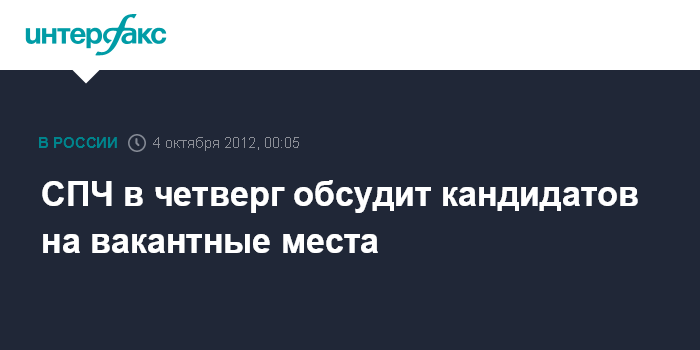 Москва. 4 октября. INTERFAX.RU - Отбор кандидатов на вакантные места в президентском совете по правам человека (СПЧ) будет обсуждаться на заседании СПЧ, которое пройдет в Москве в четверг. Его проведет глава Совета Михаил Федотов.