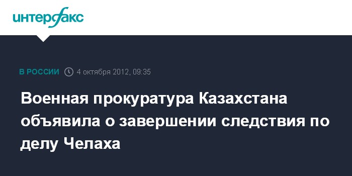 Астана. 4 октября. INTERFAX.RU - Завершено расследование уголовного дела в отношении пограничника Владислава Челаха, подозреваемого в убийстве своих сослуживцев на посту "Арканкерген", сообщил официальный представитель главной военной прокуратуры Казахстана Акбар Абдильдин.