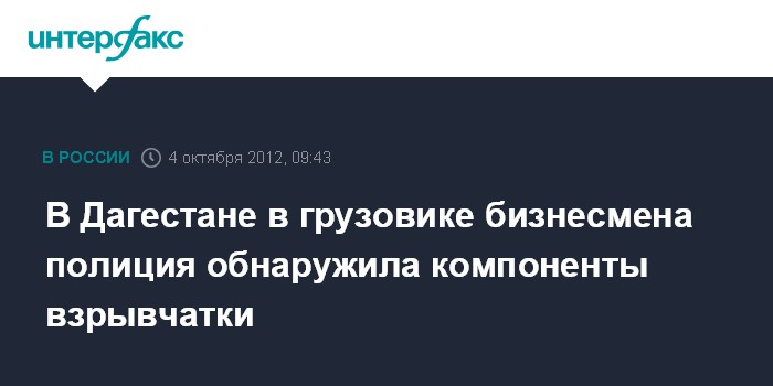 Москва. 4 октября. INTERFAX.RU - Компоненты для изготовления взрывных устройств обнаружены в автомобиле бизнесмена в Акушинском районе Дагестана, сообщил "Интерфаксу" в четверг источник в правоохранительных органах.