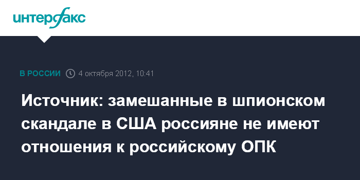 Источник: замешанные в шпионском скандале в США россияне не имеют отношения к российскому ОПК