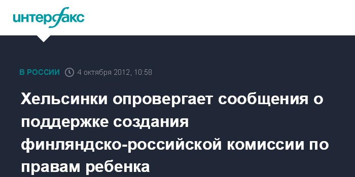 Хельсинки. 4 октября. INTERFAX.RU - Канцелярия президента Финляндии Саули Ниинисте опровергла сообщения СМИ о поддержке главой государства создания финляндско-российской комиссии по правам ребенка.