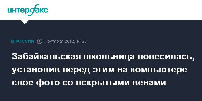 Забайкальская школьница повесилась, установив перед этим на компьютере свое фото со вскрытыми венами