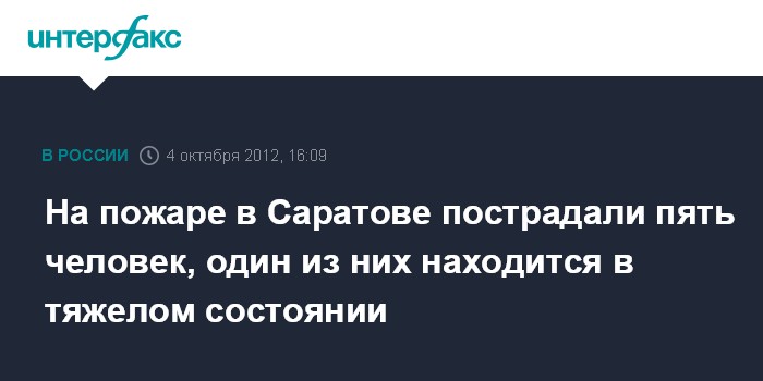 Саратов. 4 октября. INTERFAX.RU - Во время пожара на Саратовском НПЗ пострадали пять человек, один из них находится в тяжелом состоянии, сообщила "Интерфаксу" пресс-секретарь ГУ МЧС Саратовской области Наталья Куличенкова.